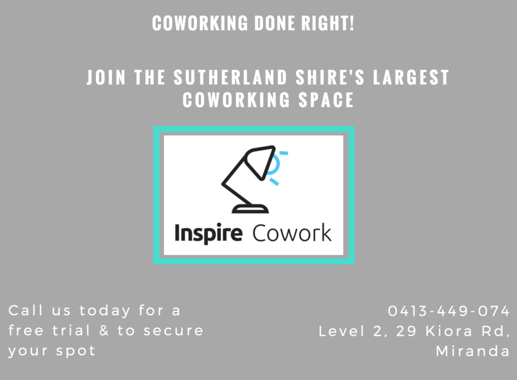 If you want to learn more about Inspire Cowork or have any comments or questions on the above, please don’t hesitate to send me an email, give me a call, or pop into the coworking space for a cup of coffee. We are the largest coworking space in the Sutherland Shire and are based on Level 2, Kiora Mall, Miranda.