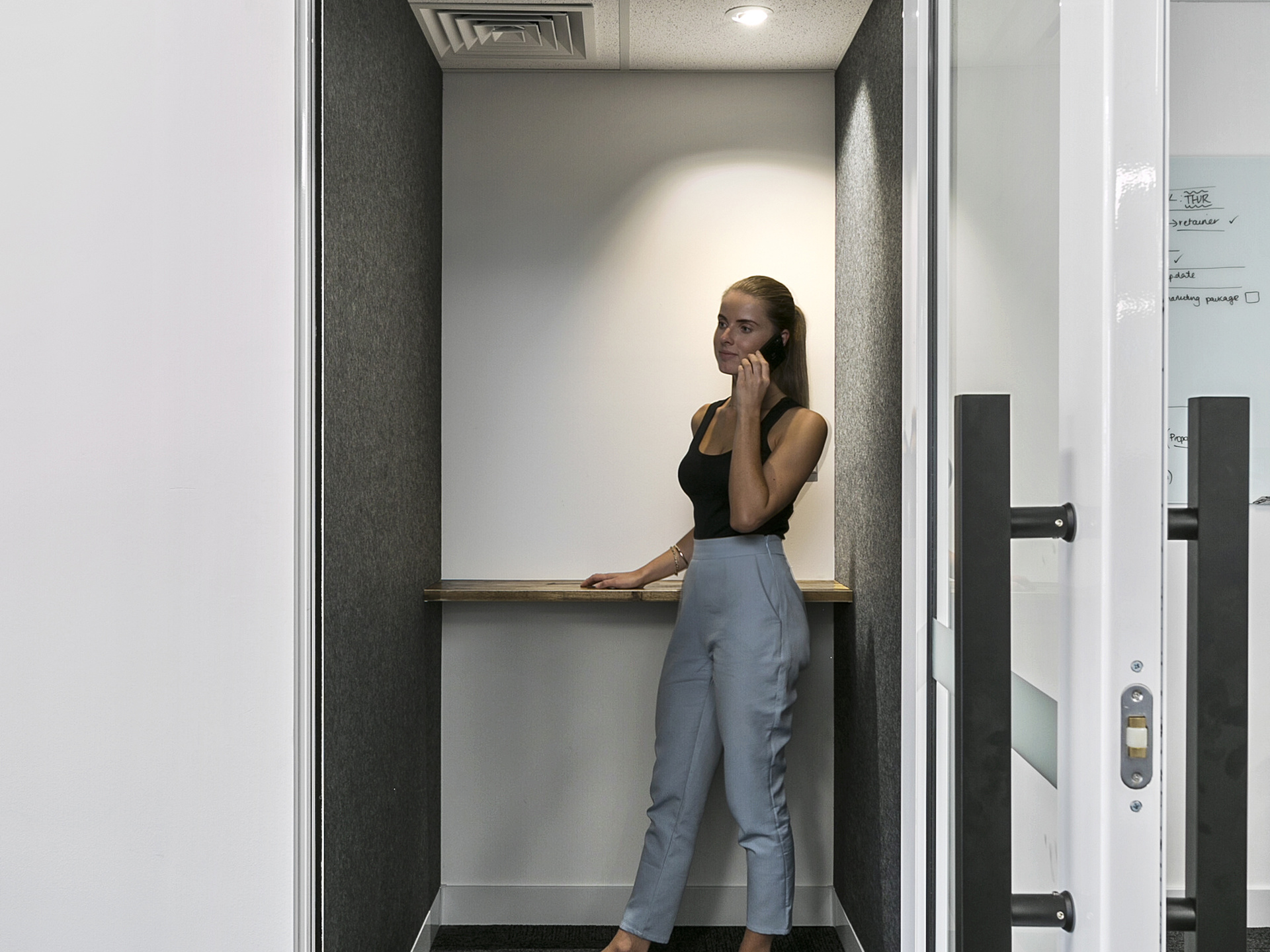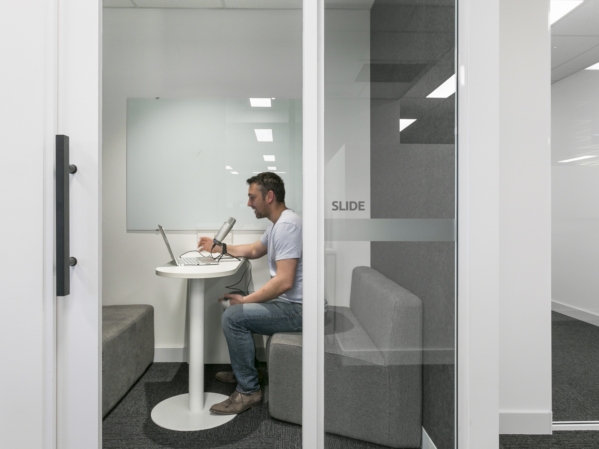 Run webinars from our 2 person phone booths lined with acoustic foam